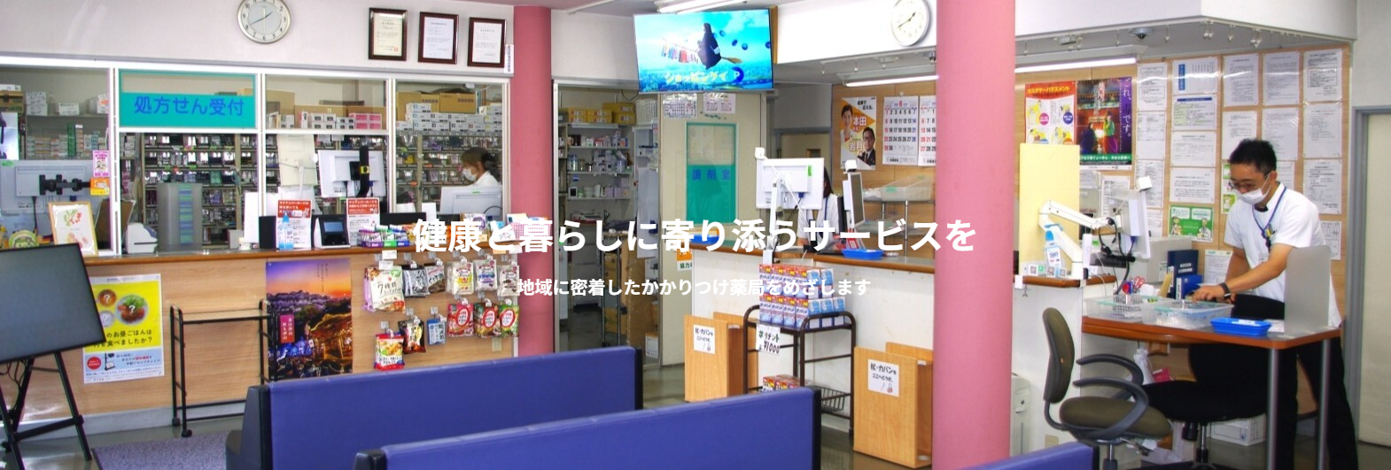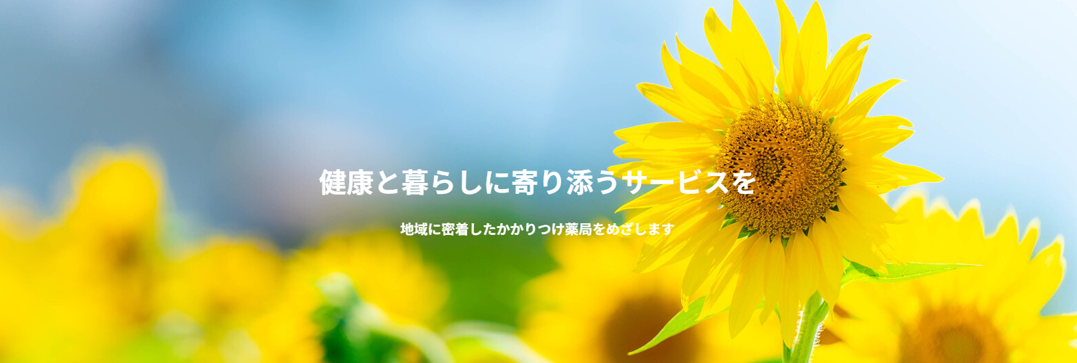 当薬局は、地域密着型のトータルヘルスケアができる薬局を目指しています。疾病に対する薬物提供のみならず、予防や健康の維持・増進といった幅広いステージにて地域貢献を行っていきます。